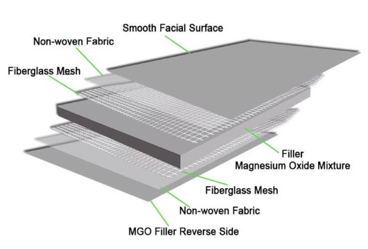 MgO is ontwikkel met die mees gevorderde Chinese tegnologie in MgO sulfaatchloried-vrye formule met 4 lae hoë-trek glasvesels om meer trek sterkte en meer brandweerstand tydsduur te verkry. Dit kan 2 uur se brandweerstand bereik met 'n enkellaag in 'n staalstutafskorting struktuur.