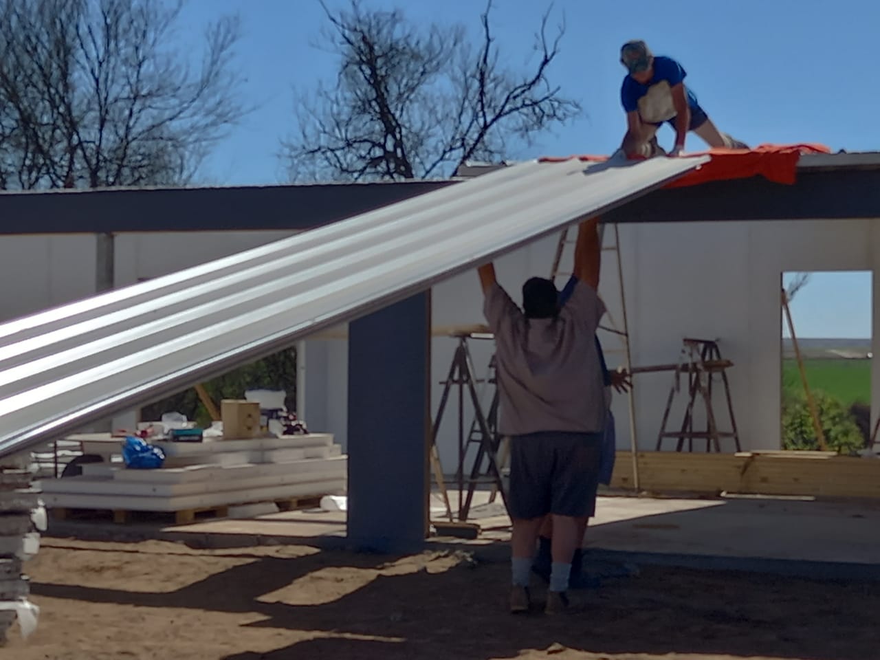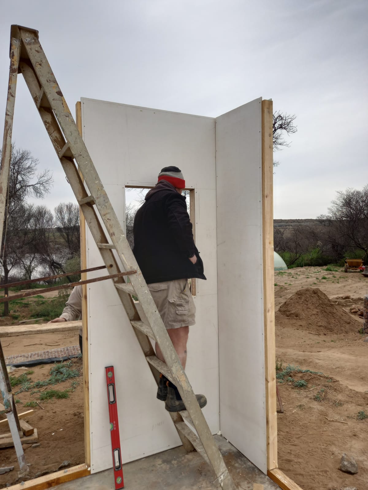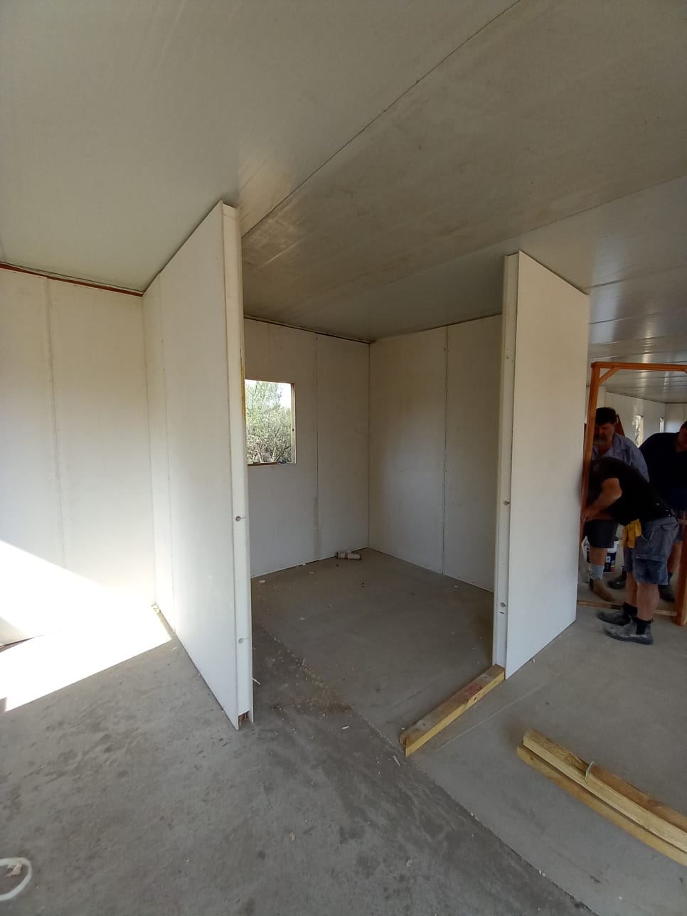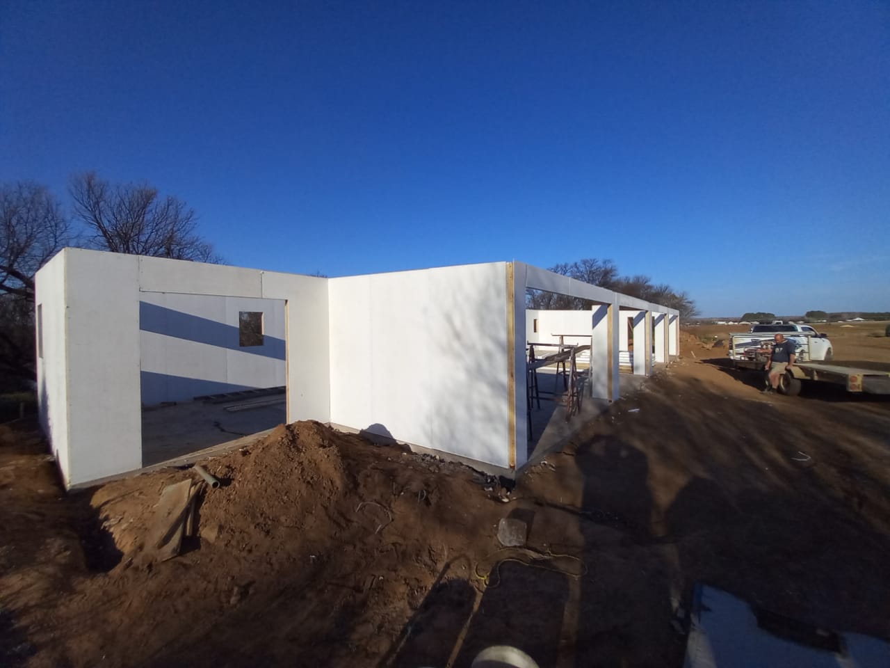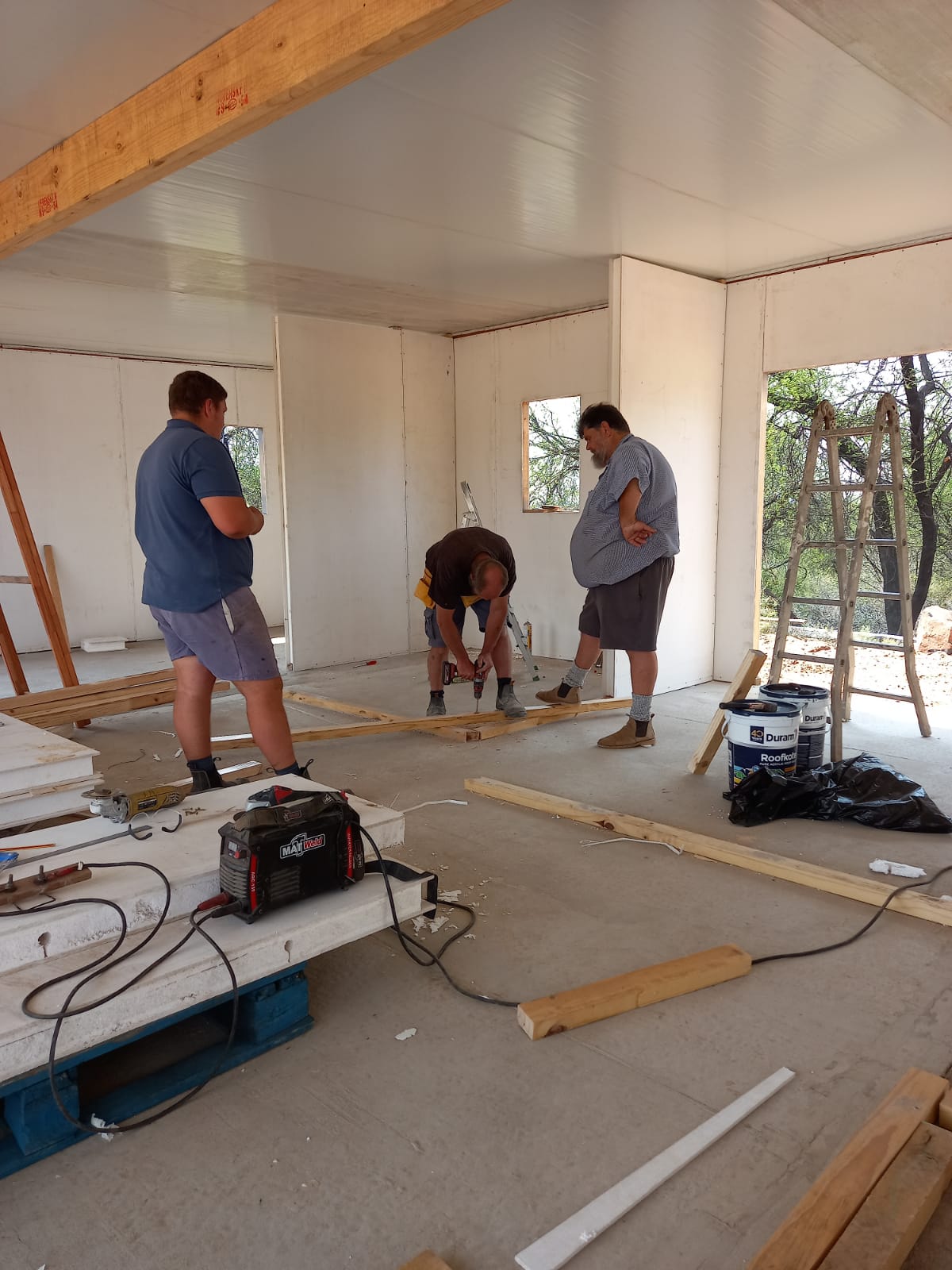 Gallery Tuis >Gallery Fondasie en voorbereiding vir panele Fondasie en voorbereiding vir panele Eerste hoek word opgestel Panele afgelaai en hanteer deur slegs 2 persone Mure word geanker en gestut Stutwerk aan mure soos bouery vorder Binne enkele dae is die struktuur klaar opgerig Geïsoleerde dakplate word geïnstalleer Vordering op dak installasie en dra Balk binnemure word installeer binnemure word installeer Vordering op binnemure en binne deure